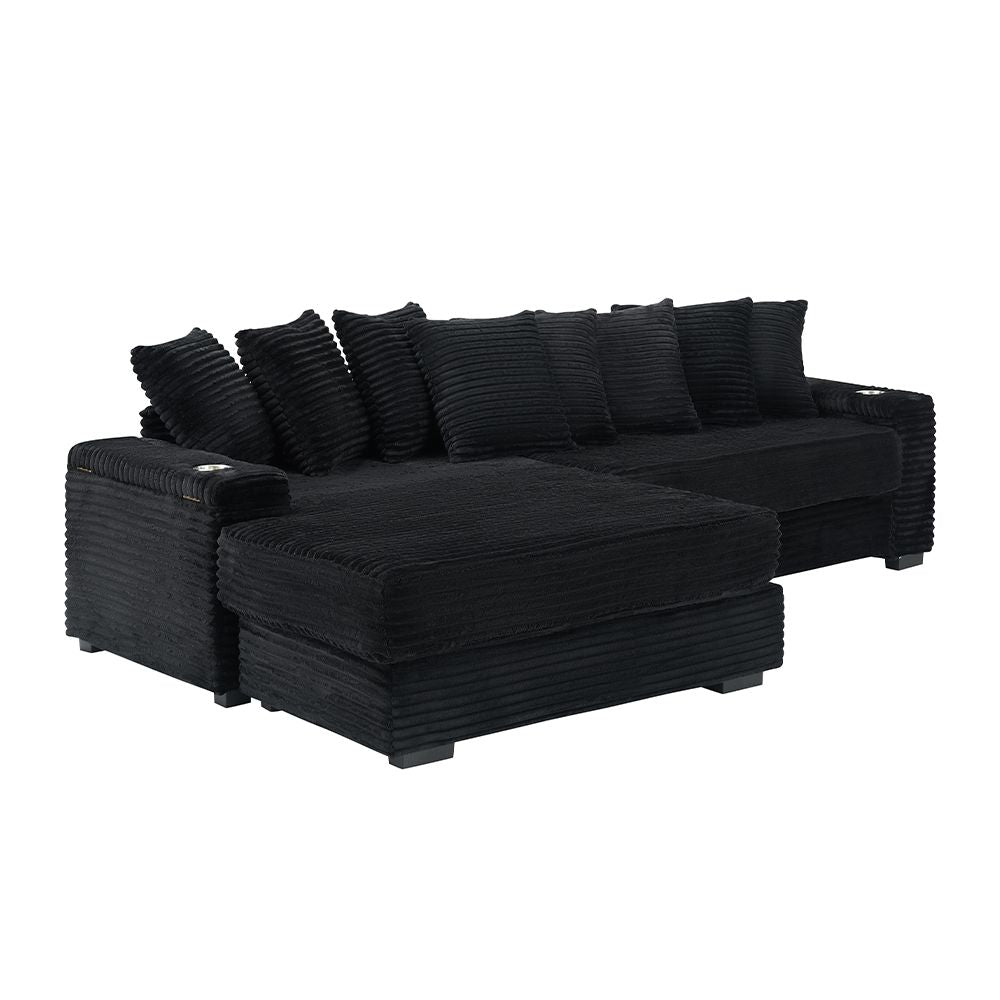 <divstyle="font-size: 16px;="" font-weight:bold;line-height:24px;color:="" #333333;word-break:="" break-word;"="">The black corduroy sofa with cup holders and lockers on its armrests and a reversible chaise lounge.</divstyle="font-size:>